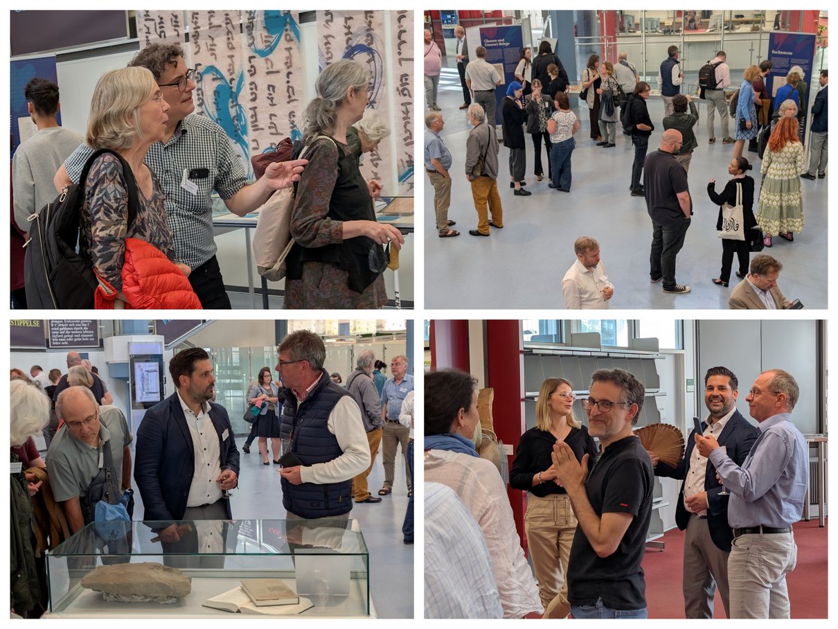 Als besondere Attraktion kuratierte das Team um Dr. Andreas Lehnertz (Juniorprofessor für Mittelalterliche Geschichte an der Universität Trier), Prof. Dr. Simon Neuberg (Jiddistik) und Fabian Heyduck (Jiddistik) eine Ausstellung in der Bibliothekszentrale, die durch eine großzügige Spende des Freundeskreises der Universität Trier realisiert werden konnte. Thema ist die Entwicklung des Jiddischen von den ältesten Quellen bis ins Spätmittelalter. Zum Finale von Tag 1 des Symposiums wurde die Ausstellung feierlich eröffnet. Wir freuen uns über den überaus erfolgreichen Auftakt mit rund 80 Gästen —sowohl Fachpublikum als auch interessierte Laien.