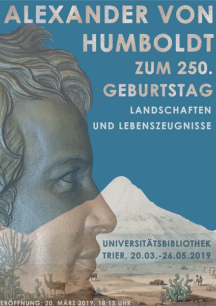 Trier hat ein Humboldt-Gymnasium, Südamerika den Humboldtstrom und die Welt ein Humboldt-Jahr – denn 2019 feiert man den 250. Geburtstag des großen Reisenden, Naturforschers und Weltbürgers Alexander von Humboldt (1769-1859). Aus diesem Anlass zeigt die Universitätsbibliothek Trier vom 20. März bis zum 26. Mai 2019 die Ausstellung „Alexander von Humboldt zum 250. Geburtstag – Landschaften und Lebenszeugnisse“.