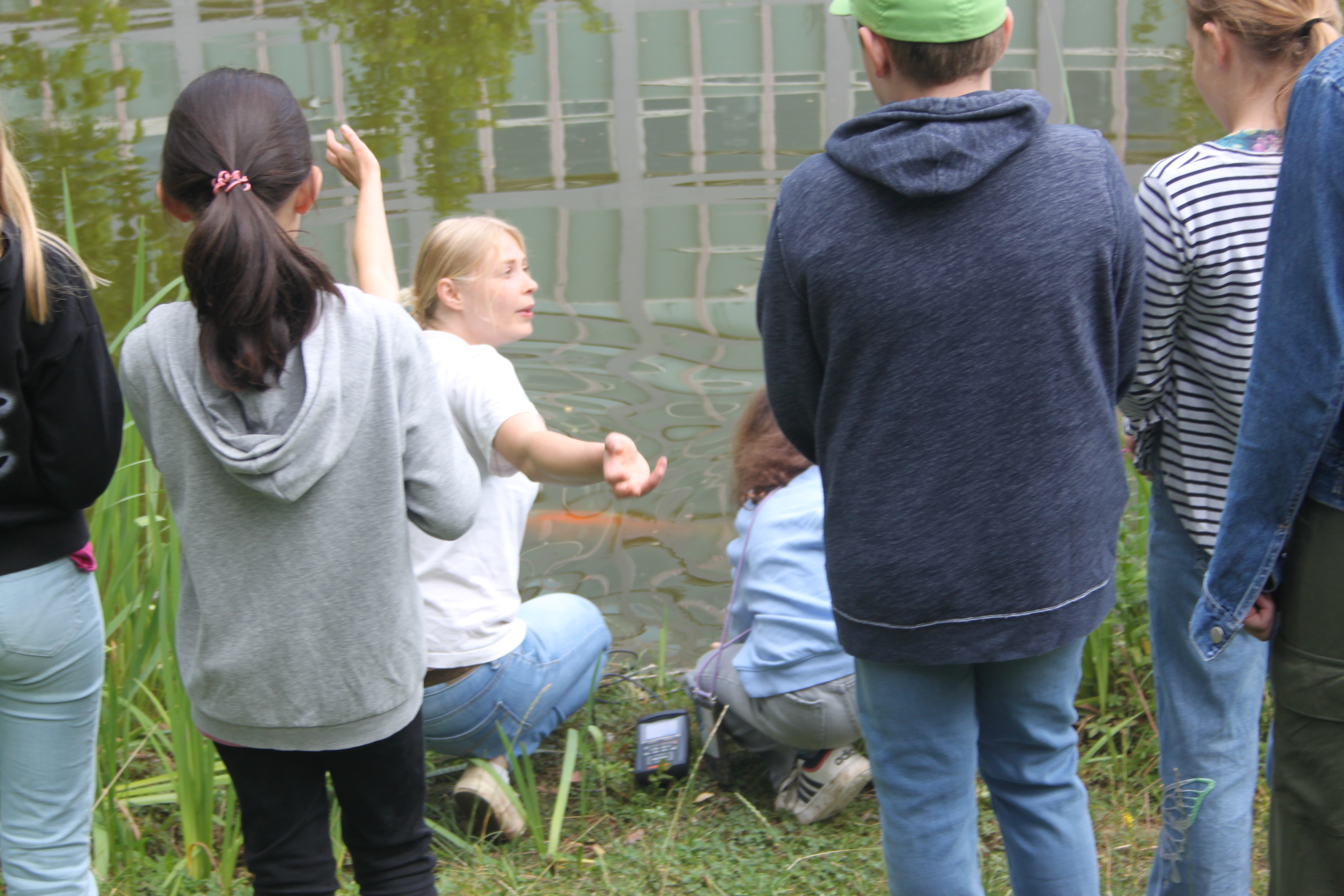 Interview: Julia (10) kommt aus Luxemburg und sagt, dass sie nicht wusste, dass es im Teich Sauerstoff gibt.