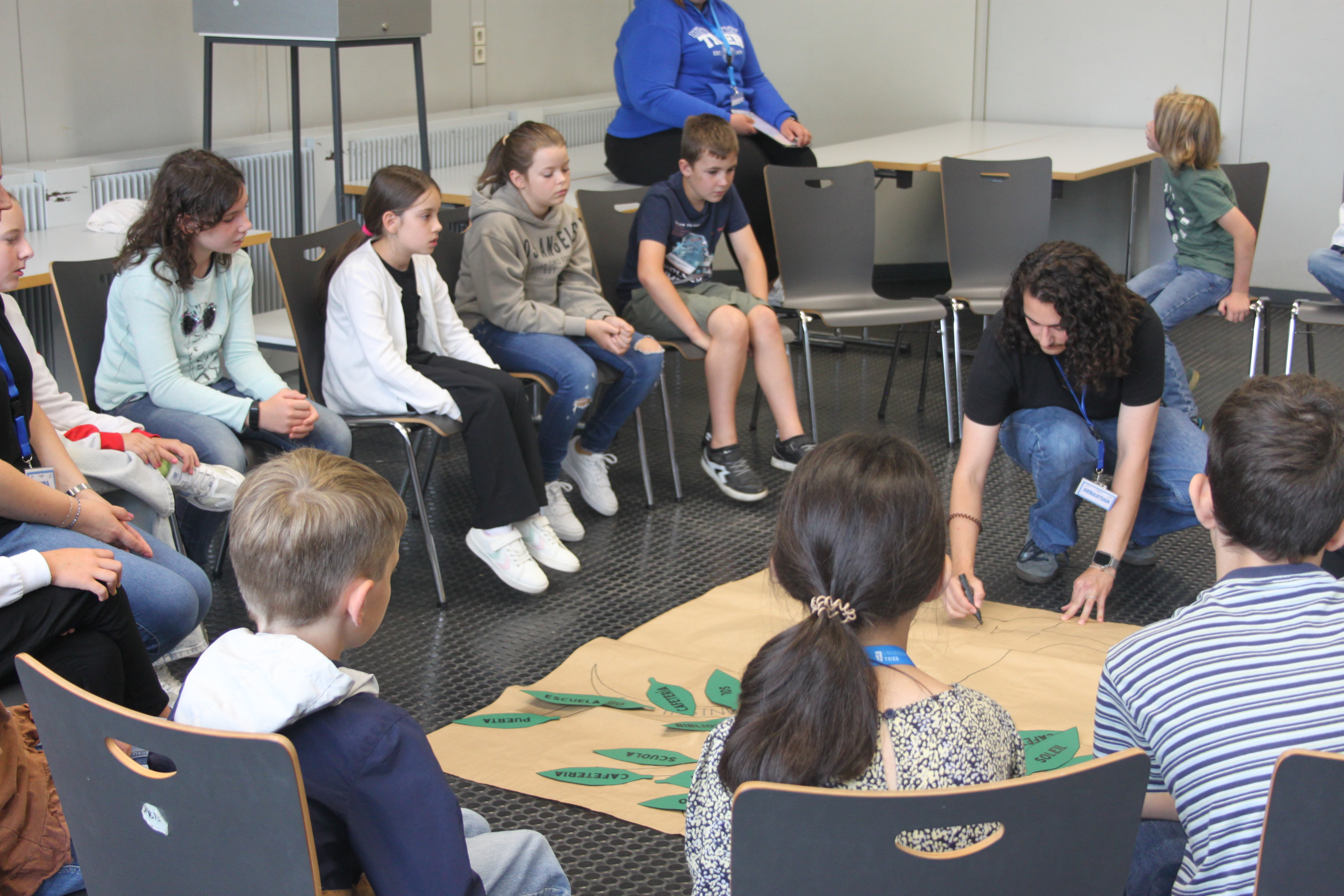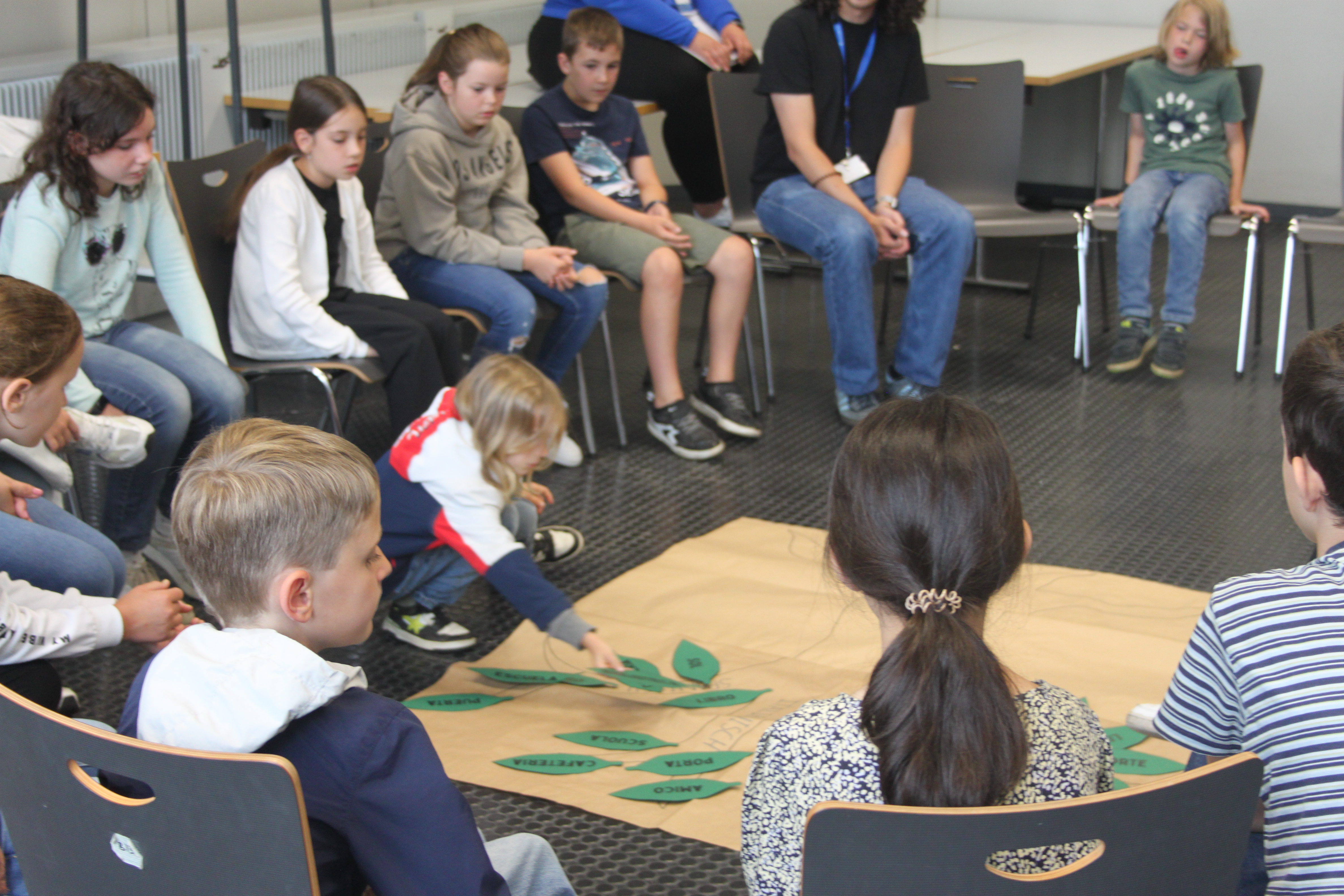 Wir wurden in Gruppen aufgeteilt und hatten drei verschiedene Stationen. In der ersten Station haben wir Wörtersuchrätsel gemacht. Wir mussten deutsche Wörter finden, die zu französischen, italienischen und spanischen Wörtern passen. Das hat Spaß gemacht und wir haben gelernt, dass diese Sprachen wie Geschwister sind, weil sie alle vom alten Latein kommen! In der zweiten Station mussten wir Wörter zuordnen, die zu den Sprachen Französisch, Italienisch und Spanisch gehören. In der dritten Station mussten wir Sätze in die richtige Reihenfolge bringen. Daraus entstand ein Satz, den wir uns genau angesehen haben. Wir haben uns intensiv über die Ausdehnung des Römischen Reiches unterhalten, wo Latein die Amtssprache war. Wir haben viel über die Geschichte gelernt.