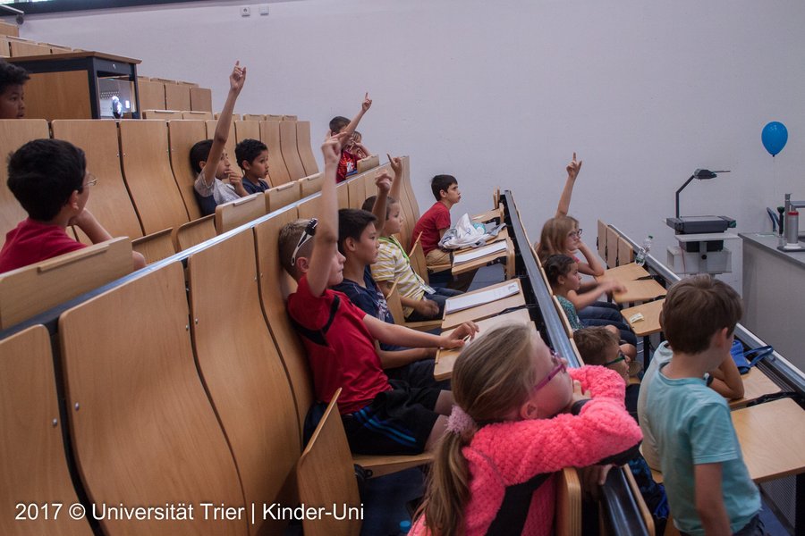 Justus (20 Jahre alt) studiert im zweiten Fachsemester Psychologie an der Uni Trier. Er erinnert sich noch, dass bei der Kinder-Uni, die er als Kind in Münster besuchte, eine sehr freundliche und offene Atmosphäre herrschte und jederzeit alle Fragen willkommen waren. "Ich fand vor allem die Größe der Hörsäle im Vergleich zu meinen damaligen Klassenräumen beeindruckend. Außerdem hat mich die Vielfalt der Themen und die Freiheit, mit der man diese wählen konnte, beeindruckt." Er hat dort damals innerhalb weniger Wochen eine Vorlesung über Chemie, eine über Geschichte und eine über das Thema Lachen gehört. "Ich war positiv überrascht, dass man sich auf so 'kleine' Themen für sein Arbeitsleben spezialisieren kann". Am Studienleben heute gefällt ihm vor allem die Eigenverantwortung beim Lernen und die Freiheit in der Wahl seiner Themen innerhalb der Psychologie, obwohl diese durch Pflicht-Vorlesungen noch begrenzt sind.