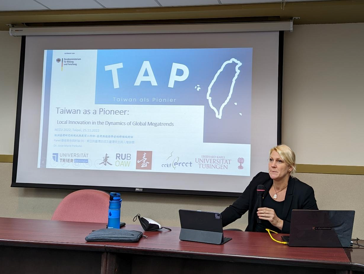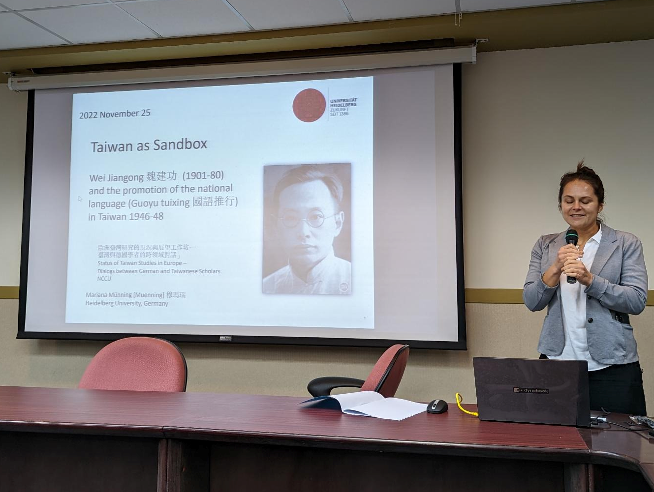 On November 25th, 2022 Dr. Perkuhn and Dr. Fliß from the TAP-Project participated together with Prof. Soffel from the sinology department of the University of Trier and Dr. Münning from the sinology department of the University of Heidelberg in the workshop "Status of Taiwan Studies in Europe ─ Dialogs between German and Taiwanese Scholars". Besides holding their presentations they exchanged thoughts and ideas with the professors from the National Chengchi University (國立政治大學).