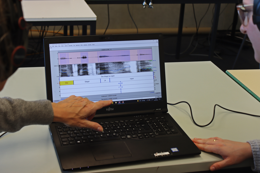 Konturen unterscheiden oder wie sich unsere Sprache aus akustischer Sicht verändert, wenn wir mit Kindern reden (im Vergleich zur Sprache mit Erwachsenen). Eine Doktorandin untersucht zudem, welche akustischen Merkmale Äußerungen aufweisen, wenn sie nicht wörtlich, sondern ironisch gemeint sind. Für die Analyse dieser Experimente verwenden wir Sprachanalyseprogramme wie Praat.