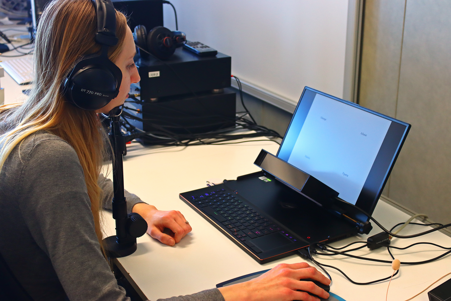Diese Methode wird für Experimente eingesetzt, in denen wir untersuchen, wie Personen Sprache wahrnehmen und interpretieren und ganz besonders, welche akustischen Hinweise im Sprachsignal hierfür genutzt werden. Die Experimente laufen in der Regel so ab, dass Versuchspersonen bestimmte Sätze oder Wörter hören, die sie dann in einer Entscheidungsaufgabe bewerten (z.B. Klingt der Satz ironisch oder aufrichtig, stammt die Kinderstimme von einem Jungen oder einem Mädchen, welche Silbe im Wort ist die betonte, 1, 2, oder 3 etc.). Neben der eigentlichen Entscheidung zeichnen wir häufig auch die Reaktionszeiten der Versuchspersonen auf, um Rückschlüsse auf Verarbeitungsmechanismen ziehen zu können.