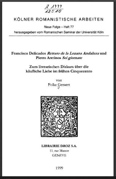 16.01.2002. „Referencias a la literatura italiana en el Retrato de la Lozana Andaluza“. Universitat de Lleida auf Einladung von Jaume Pont.