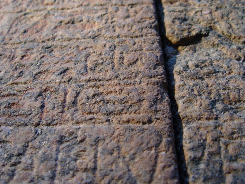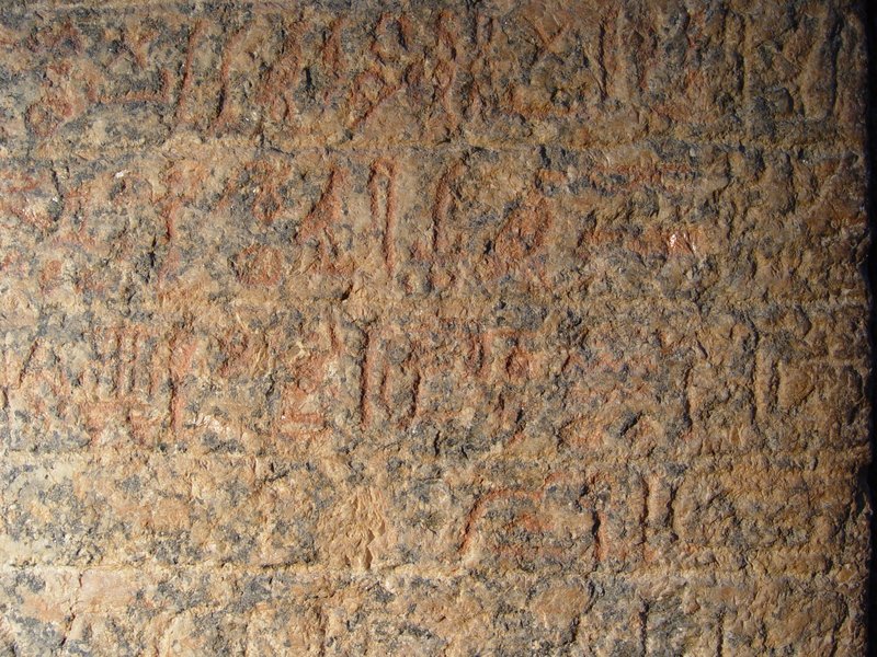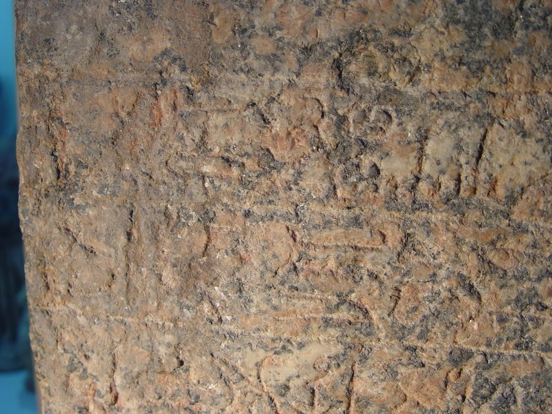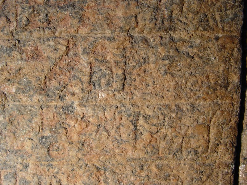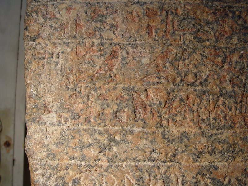Gallusstele, Ende Z. 3, Detail zu Z. 3–4, f, bj3 "wunderbare Erzeugnisse"