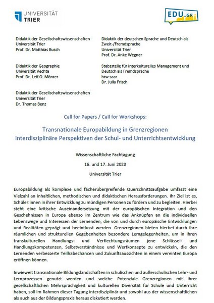 zum Thema "Transnationale Europabildung in Grenzregionen Interdisziplinäre Perspektiven der Schul- und Unterrichtsentwicklung"