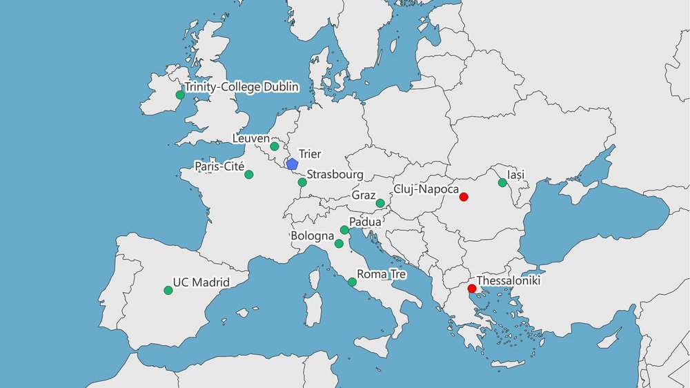 Dort bestehen ERASMUS-Abkommen mit den Partnerhochschulen: Leuven, Paris-Cité, Strasbourg, Trinity College Dublin, Bologna, Padua, Roma Tre, Graz, Iași und UC Madrid (die dortige Bewerbungsfrist endet am 28.2.2025).