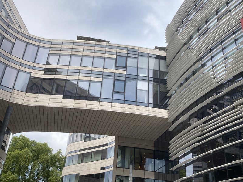 Am Nachmittag wandten wir uns wieder der Architektur zu und begaben uns durch die Düsseldorfer Altstadt bis zum Kö-Bogen, wo wir die Bauwerke von Daniel Libeskind bestaunten und in die historische Entwicklung einordneten. Wir erfuhren vieles über Denkmalpflege in Düsseldorf sowie die Abrissdebatte rund um den Kö-Bogen, der Bauwerke des Organischen Stils sowie des modernen Green-Buildings vereint, standen vor der Ikone der Nachkriegsmoderne, dem Dreischeibenhochhaus, und lernten vieles über den Theaterbau von Bernhard Pfau.