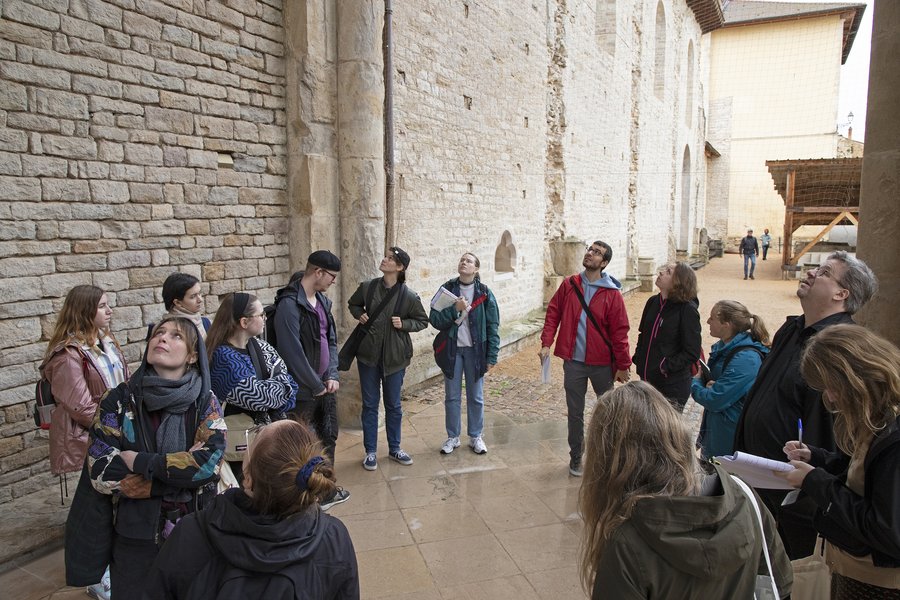 „Die beste Bildung findet ein gescheiter Mensch auf Reisen“, schreibt Goethe in seinem Werk Wilhelm Meisters Lehrjahre (1795/96). Auf der Südfrankreich-Exkursion des Faches Kunstgeschichte an der Universität Trier hat sich dieser Auszug bewahrheitet –– gerade hier zeigte sich wieder die Besonderheit des Faches, eine Kunstgeschichte am tatsächlichen Objekt erleben zu können. Den Studierenden wurde eine ganze Bandbreite künstlerischen Schaffens geboten, vom frühen Mittelalter bis zur Gegenwart. 15 Objekte waren die Stationen der Exkursion, darunter die Abbaye Fontenay bei Montbard, die Chapelle des Moines in Berzé-la-Ville, das LUMA in Arles, der Papstpalast in Avignon, das MUCEM in Marseille, die Fondation Carmignac auf der Île de Porquerolles oder das Musée des Beaux-Arts in Dijon. Es war eine große Bereicherung, eine solche Fülle von Objekten direkt vor Augen zu haben. Mit den originalen Kunstwerken in Reichweite übten die DozentInnen mit ihren StudentInnen täglich die Rezeption von Kunstwerken: Aus welchen Blickwinkeln sind sie zu betrachten, zu bewerten, und (auch) zu hinterfragen. Wichtig war auch die gemeinsame Diskussion über die Werke, die dazu beitrug, die Kunstwerke lesen zu lernen. Mit insgesamt über 20 Referatsthemen war das Programm zwar anspruchsvoll, ließ aber auch dem Savoir-Vivre, dem französischen Lebensgefühl, seinen Raum. Seien es die frisch gebackenen Croissants einer Patisserie in Cluny, die Picknicks mit Baguette, Wein, Käse und Macarons in Arles oder die Fisch-Restaurants in Marseille –– für alle TeilnehmerInnen war das Richtige dabei.