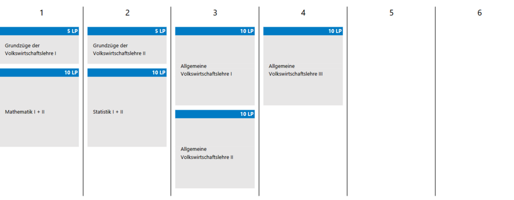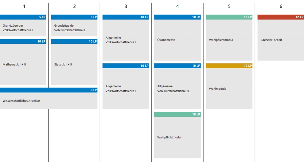 Beachte bitte, dass je nachdem ob Volkswirtschaftslehre/Economics dein Haupt- oder Nebenfach sein soll, die Vorgaben abweichen können.