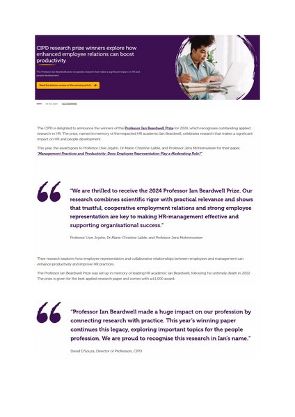 Professor Ian Beardwell Prize für Uwe Jirjahn