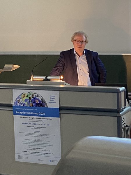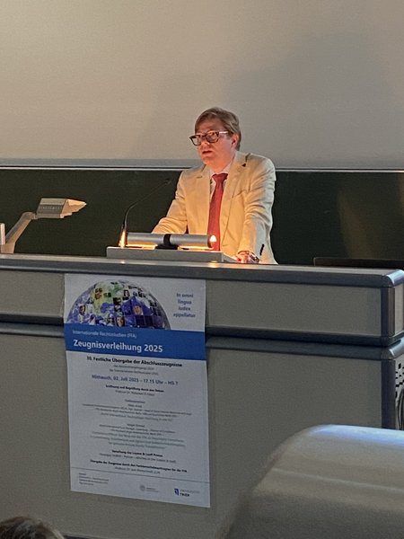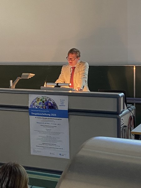 - Übergabe der Zeugnisse durch den Fachbereichsbeauftragten für die FFA, Professor Dr. Jens Kleinschmidt, LL.M.