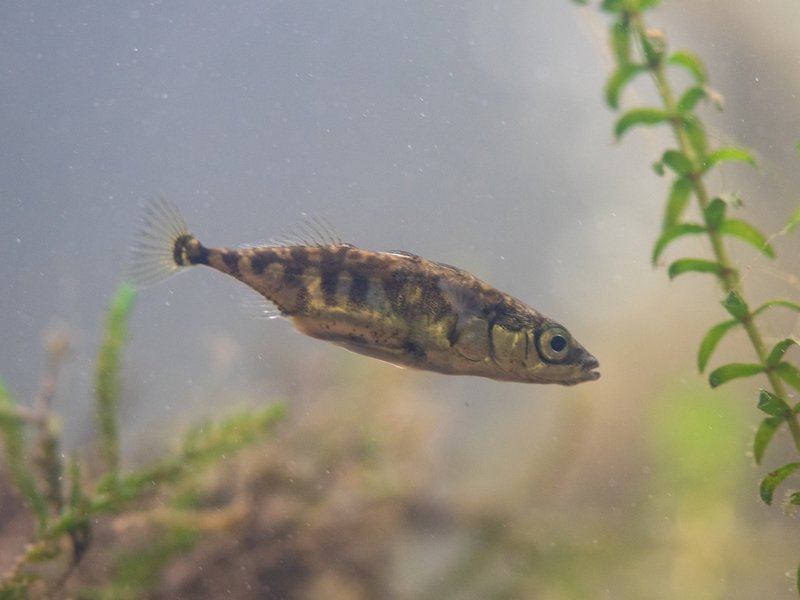 Der Dreistachlige Stichling (Gasterosteus aculeatus) ist einZooplankton fressender Kleinfisch (< 10cm), der in heimischen Gewässern weit verbreitet ist. Namensgebend sind die drei Stacheln auf dem Rücken des Fisches, die als Schutz vor Fressfeinden dienen. Dreistachlige Stichlinge sind sehr anpassungsfähig und finden sich in diversen Gewässertypen, von großen Seen und Flüssen bis zu kleinen Teichen und Bächen. Als so genannte euryhaline Art, können Dreistachlige Stichlinge im Meer und Süßwasser überleben, sie finden sich daher auch in Nord- und Ostsee. Stichlinge zeichnen sich durch einen auffälligen Sexualdimorphismus zur Paarungszeit aus. Männchen sind während dieser Zeit intensiv grün-blau gefärbt und tragen eine rote Brust. Die Tiere zeigen zudem ein interessantes Brutpflegeverhalten: Das Männchen baut ein Nest, in dem das Weibchen die Eier ablegt, wo sie anschließend vom Männchen bewacht werden. Der Dreistachlige Stichling ist ein Modellorganismus der Evolutionsbiologie. An dieser Art wurden wichtige Erkenntnisse zur genetischen Basis evolutionärer Anpassungen erforscht.