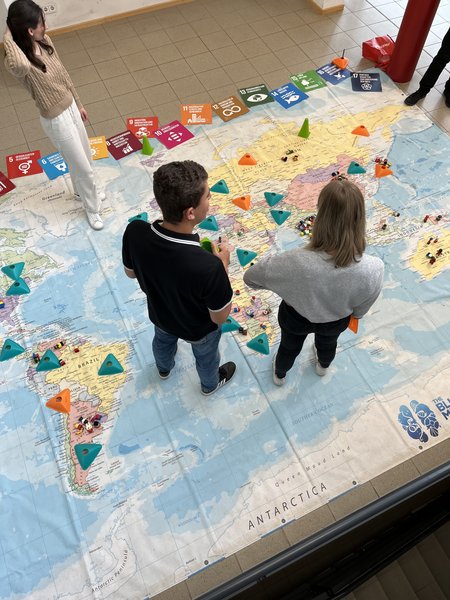 Das Weltspiel ist ein Klassiker der Bildung für nachhaltigen Entwicklung und wird vielfältig bei außerschulischen Bildungsanbietern eingesetzt. Es wurde ursprünglich vom Entwicklungspädagogischen Informationszentrum Reutlingen entwickelt und ermöglicht einen niedrigschwelligen Perspektivwechsel, indem es globale Verhältnisse haptisch und visuell sichtbar macht. Im Spiel wird die Verteilung von Kennzahlen (z.B. Bevölkerung, Einkommen, CO2-Emissionen) abgebildet, um auf global ungerechte Verhältnisse und Zusammenhänge hinzuweisen. Das Weltspiel ist für verschiedene Themen anschlussfähig und vielseitig in der Bildungsarbeit auch außerhalb von BNE einsetzbar.