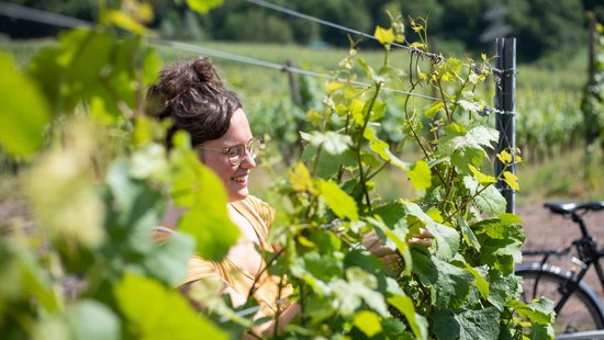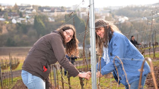 Bei Sonnenschein und sommerlichen 26 Grad haben fleißige Helferinnen und Helfer die Weinpflanzen des Uni-Weinbergs gezähmt.