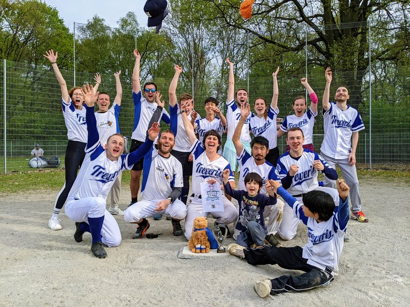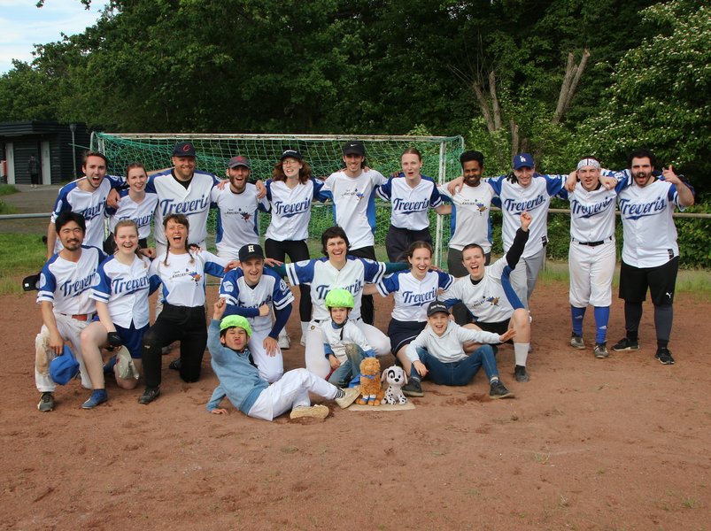 Den dortigen Gegner Münster Roadrunners kennen wir schon aus zahlreichen Begegnungen in der College Series (der Universitätsliga für Softball) und waren daher nicht überrascht über deren starkes Batting – und die Homeruns gegen uns. Nach dieser Niederlage sollten wir dann im kleinen Finale noch einmal gegen die Siegen Pirates antreten, gegen die wir am Tag zuvor in der Vorrunde verloren hatten. Völlig unerwartet und mit dem denkbar knappsten Vorsprung von nur einem Punkt (und noch zwei Runnern on Base sowie einem Homerun-Batter am Schlag, den wir ausstriken konnten) gewannen wir dieses Spiel und errangen damit den dritten Platz des Turniers! Zur Belohnung gab es sogar noch einen tollen Pokal, den wir nach einer ausgelassenen Heimfahrt und dem obligatorischen Basehit-Whoppern stolz mit nach Trier bringen konnten.