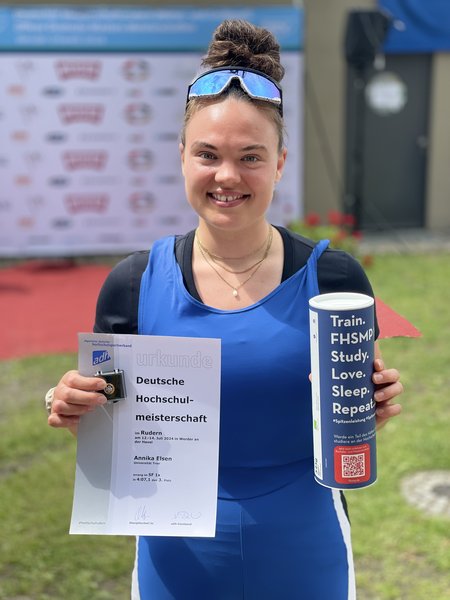 Annika Elsen trat wie zuvor auch dieses Jahr wieder alleine im Einer an. Trotz einer starken Leistung reichte die Kraft allerdings nicht ganz aus, sie verpasste diesmal ganz knapp die Silbermedaille und sicherte sich somit die Bronzemedaille. Sie ist damit nicht nur die erfolgreichste Uni-Ruderin der letzten Jahre, sondern eine der erfolgreichsten Sportlerinnen der Universität Trier überhaupt. In den letzten vier Jahren hat sie an drei Meisterschaften teilgenommen und dabei dreimal Silber, zweimal Bronze und einmal Gold gewonnen.