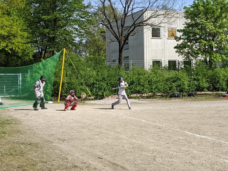 Wie immer begann der Spieltag für uns bereits vor 9 Uhr mit dem Warmup und den Vorbereitungen vor dem ersten Spiel. Die anderen Teams, mit denen wir uns an diesem Tag messen sollten, waren erneut die Aachen Aixplosives und die Darmstadt Dragons sowie die gastgebenden Freiburg Warthogs. Der erste Gegner des Tages waren die Darmstädter, die in diesem Spiel in guter Form waren und uns deswegen nach 5 Innings mit 12:2 besiegten. Wir gaben alles, um nicht durch Mercy Rule frühzeitig zu verlieren, aber es war uns leider nicht möglich, die Darmstädter von ihrem Sieg mit 10 Punkten Vorsprung abzuhalten.