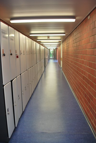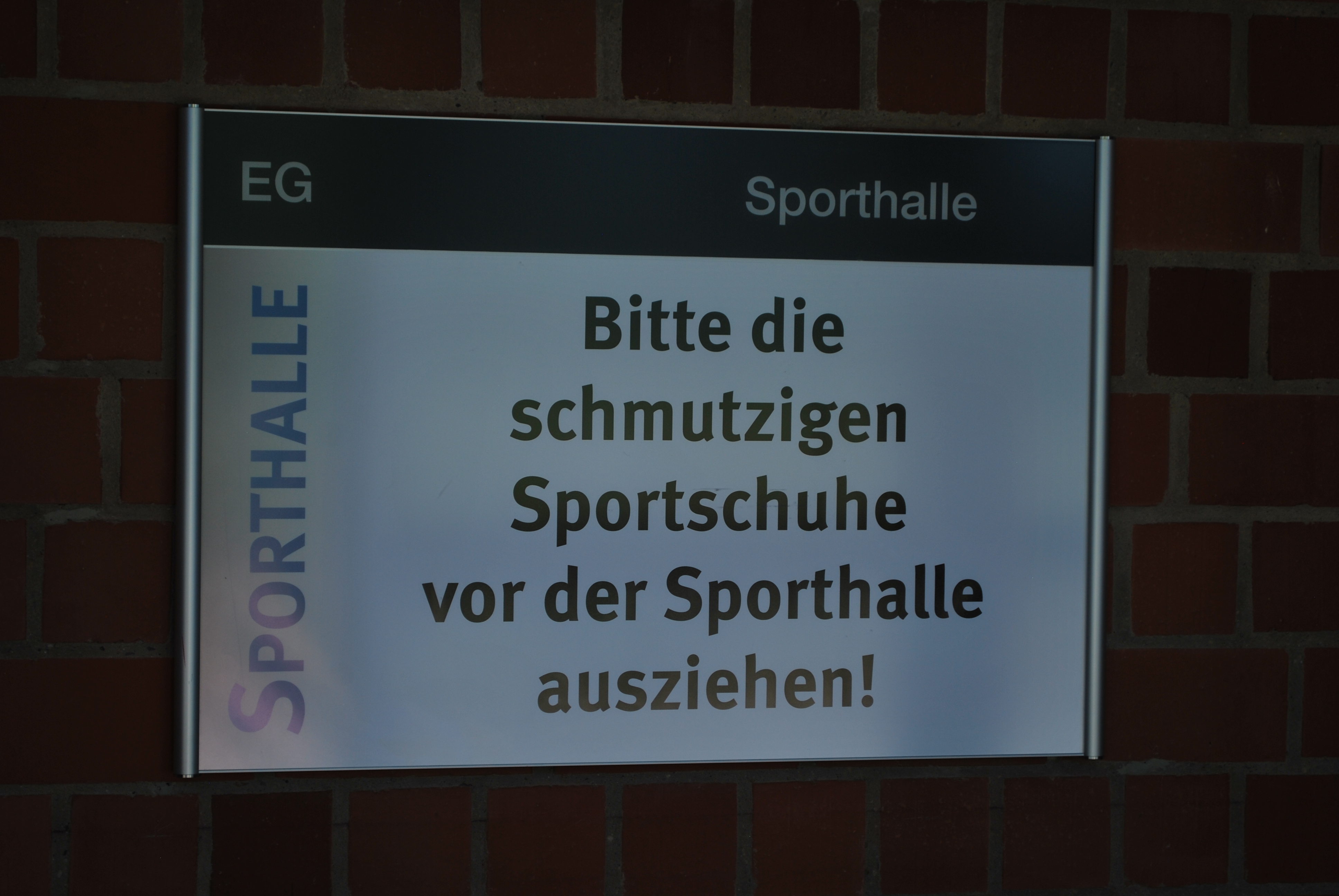 Durch den Haupteingang gelangt man direkt in die Umkleidekabinen. Hier werden die Straßenschuhe gegen saubere Hallensportschuhe getauscht, bevor man den dahinterliegenden Turnschuhgang betritt.