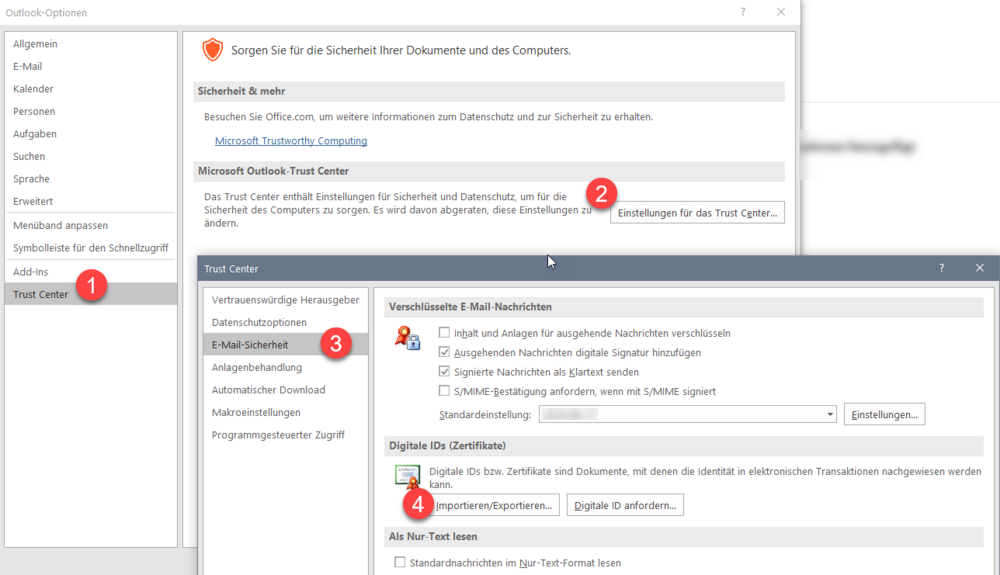 - Ausgehenden Nachrichten digitale Signatur hinzufügen (Signieren von E-Mails)
