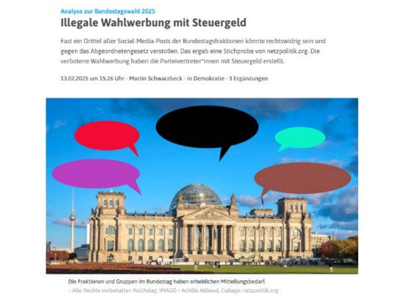On February 13, 2025, Netzpolitik.org published an interview with Prof. Dr. von Ungern-Sternberg entitled “Illegal election advertising with taxpayers' money”. The article examines the funding and legality of MPs' social media posts.