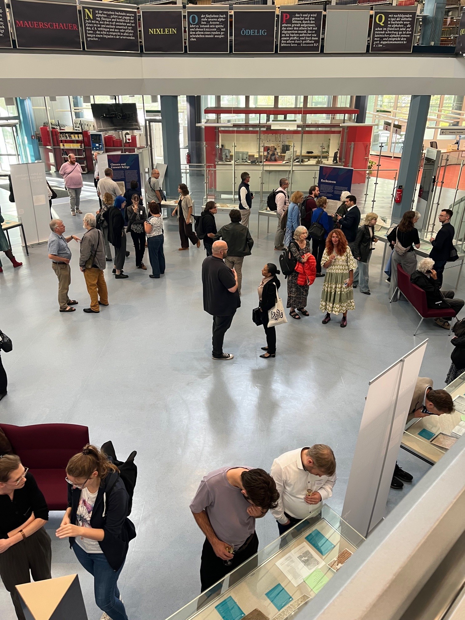 Wir möchten uns herzlich bei den zahlreichen Besucher:innen zum Auftakt der Ausstellung bedanken. Ein besonderer Dank gilt der Beauftragten für das UNESCO Welterbe der Stadt Erfurt Dr. Maria Stürzebecher für die tatkräftige Unterstützung und die Bereitstellung von Objekten sowie Materialien aus der Erfurter Ausstellung, dem Freundeskreis Trierer Universität e.V. für die Förderung des Projektes, der Universitätsbibliothek der Universität Trier für die Nutzung ihrer Räumlichkeiten und insbesondere Alexander Niemietz für die wunderbare Zusammenarbeit, der Video-Abteilung der Universität Trier für die Herstellung des Filmmaterials, sowie aller angefragten Archive und Bibliotheken für die Erstellung und Erlaubnis zur Nutzung der Digitalisate.