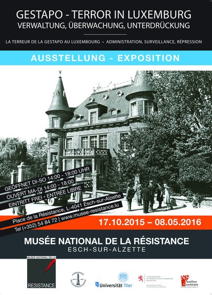 Vom 12. Januar bis zum 13. Februar 2017 ist die Ausstellung "Gestapo-Terror in Luxemburg. Verwaltung, Überwachung, Unterdrückung" in der vhs Trier (Domfreihof) zu sehen. Die Eröffnung erfolgte am 12. Januar 2017 um 19 Uhr. Es sprachen der Oberbürgermeister Wolfram Leibe, der Luxemburger Honorarkonsul und OB a.D. Klaus Jensen sowie der Historiker Dr. Thomas Grotum.