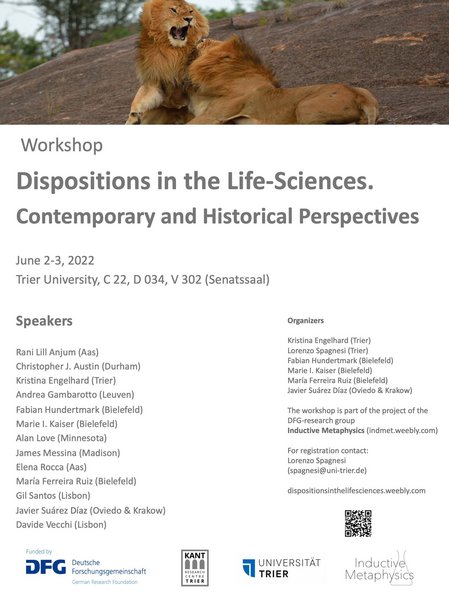 This workshop aims at discussing views on dispositions in the life sciences from a contemporary and from a historical perspective. It focuses on contemporary views in the philosophy of science that take scientific practice as their fundament and wants to cross a bridge to historical accounts that model biological systems by dispositional properties.