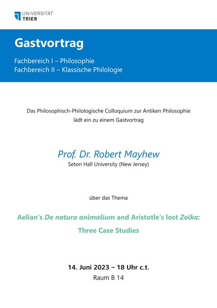 Die Tagung im Gästeraum Mensa der Universität Trier aus Anlass des 65. Geburtstages von Herrn Prof. Dr. Georg Wöhrle (Klassische Philologie – Gräzistik) statt.
