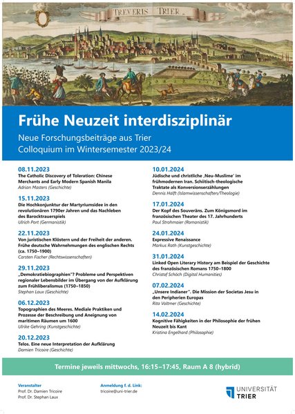 Organisation: Prof. Dr. Kristina Engelhard, Prof. Dr. Damien Tricoire, Armin Emmel