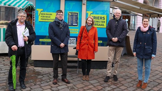 Der Kiosk auf dem Hauptmarkt wird von April bis Juni als Veranstaltungsort genutzt und bringt Forschung und Lehre von Universität und Hochschule Trier ins Stadtzentrum.