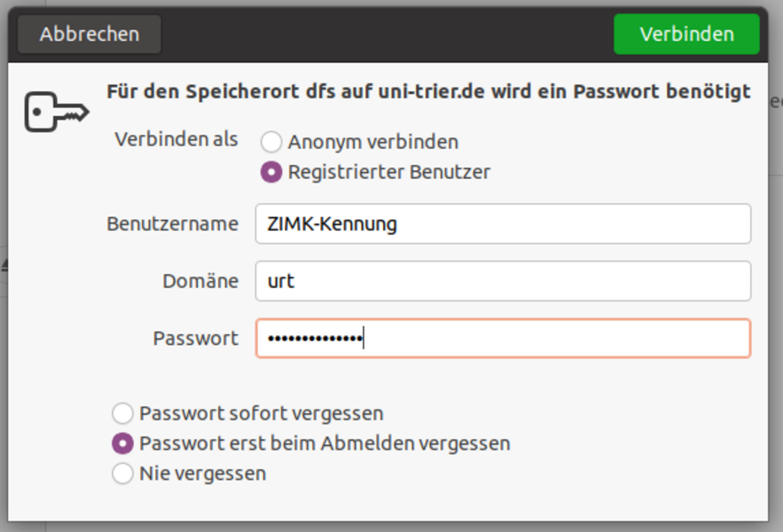 | Benutzername | Ihre ZIMK-Benutzerkennung |